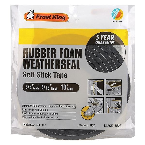Weather Seal, Overall Length 10 ft, Overall Width 3/4 in, Overall Height 5/16 in, Color Black, Seal Shape Flat, Material Rubber Foam, Product Type Adhesive Foam Seal