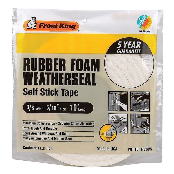 Weather Seal, Overall Length 10 ft, Overall Width 3/8 in, Overall Height 5/16 in, Color White, Seal Shape Flat, Material Rubber Foam, Product Type Adhesive Foam Seal