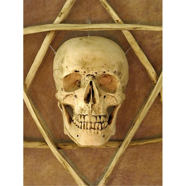 Wall Sconce, Life-Size Skull in Hexagram Bone Frame