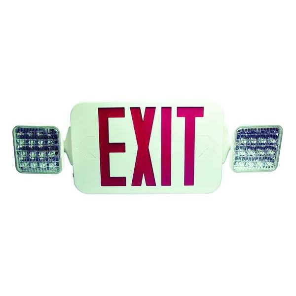 Exit Sign with Emergency Lights, Letter Color Red, Number of Faces 1 or 2, Directional Indicators - Emergency Lighting and Exit Signs Universal Field Selectable Chevrons, Light Source- Emergency Lighting and Exit Signs LED, Housing Material - Emergency Lighting and Exit Signs Plastic, Housing Color - Emergency Lighting and Exit Signs White, Battery Chemistry Nickel Cadmium, Voltage - Emergency Lighting and Exit Signs 120/277, Number of Lamp Heads 2