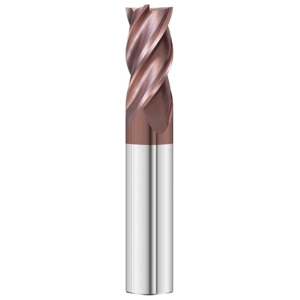 The 3200 General Purpose end mill has 4-flutes and was designed for use in titanium, super alloys, hardened steels, stainless steels, steels, cast iron, brass & copper, and low si aluminum. It is offered in a variety of configurations and is available with single-end and double-end designs. The 3200 General Purpose end mill is stocked uncoated and with FC-20, TiAlN, TiCN, and TiN coatings.