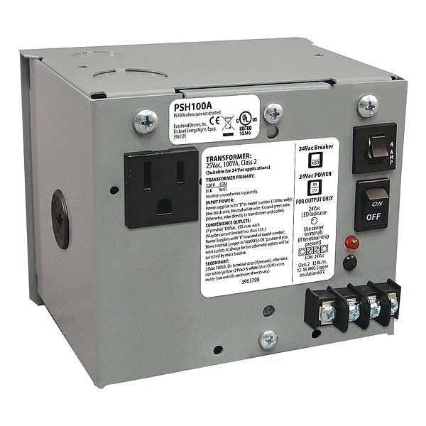 Enclosed Power Supply, 120V AC, 24V AC, 100VA