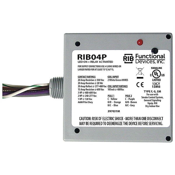 Enclosed Pre-Wired Relay, Coil Voltage 480V AC, Contact Form DPDT, Current Rating 20 A, Mounting Style Surface, Nipple Size 0.50 in NPT, Contact Rating (AC) 15 A @ 600V, 20 A @ 277 to 480/300V, Contact Rating (DC) 20 A @ 28V, Input Voltage 480V AC, NEMA Enclosure Rating 1, Body Depth 1.8 in, Body Height 1.8 in, Body Width 4 in, Contact Material Gold Flashed Silver Cadmium Oxide, For Use With Exhaust Fans, Motors, Vacuums, Frequency 50/60 Hz, Horsepower @ 120V AC 1 hp, Horsepower @ 240V AC 2 hp