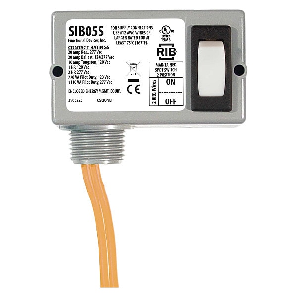 Prewired Rocker Switch, Contact Form SPST, Number of Connections 2, Switch Function On Maintained/Off Maintained, AC Contact Rating 10 A @ 120 V, 20 A @ 277 V, DC Contact Rating Not Applicable, HP 1 @ 120V AC, 2 @ 277V AC, Legend On/Off, Body Color Gray, Switch Color White, Operating Temp. Range -30 Degrees to 140 Degrees F, Standards CE, cUL, RoHS, US Listed, IP Rating Not Applicable, Special Features 1/2 in NPT Nipple