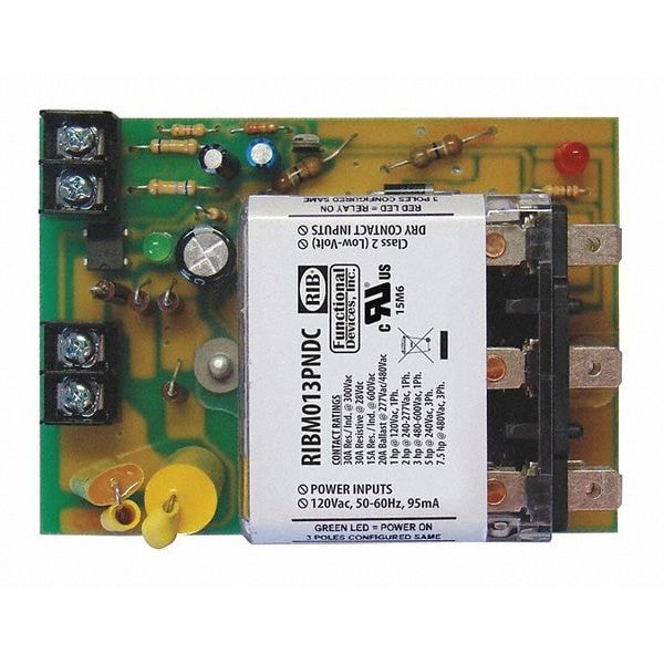 Dry Contact Relay, 30 Amp 3PDT, Class 2 Dry Contact Input, 120 Vac Power Input, 4.00" Track Mount