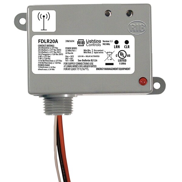 Wireless Lighting Relay, Transceiver/Repeater, 24 Vac/dc Input, SPDT relay with 10A; 120Vac In and, 20A; 277Vac Bal and 16A; 277Vac EB ratings; EnOcean 902 MHz, NEMA 1 Enclosure