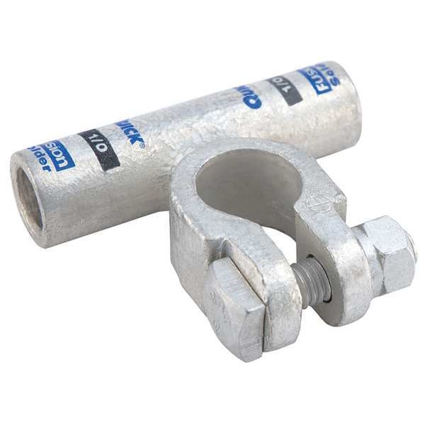 Battery Terminal, Alignment Flag, Connection Type Solder, Gauge 1/0 ga, Color Code Black, Polarity Positive, Contact Material Copper, Tin, Overall Length 2 1/2 in, Overall Width 2.2 in, Overall Depth 0.7 in, Features Stronger than Crimp Method, Tin Plated for Added Conductivity and Corrosion Resistance, Standards RoHS Compliant, Includes Fasteners, Attachment Location Top, Stud Size 5/16 in