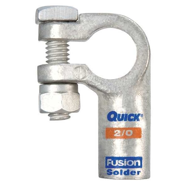Battery Terminal, Alignment Left Elbow, Connection Type Solder, Gauge 2/0 ga, Color Code Orange, Polarity Negative, Contact Material Copper, Tin, Overall Length 2 1/16 in, Overall Width 1.4 in, Overall Depth 0.7 in, Features Stronger than Crimp Method, Tin Plated for Added Conductivity and Corrosion Resistance, Standards RoHS Compliant, Includes Fasteners, Attachment Location Top, Stud Size 5/16 in