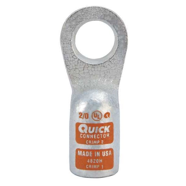 One-Hole Compression Lug, 2/0 AWG Max, 1/2 in Stud, Standard Barrel, Copper, Orange