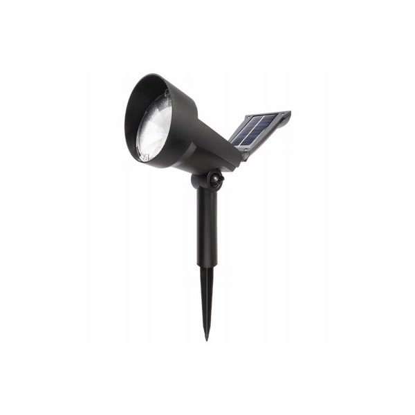 Solar Spotlight with Hinged Panel 30 Lumen Features durable plastic construction with a black coat finish During the day the solar panel charges the battery creating electrical power At dusk the solar panel, sensing the absence of light, turns on the solar garden light using the electricity stored during the day The more sunlight the fixture gets, the stronger the charge will be and the longer your fixture will illuminate at night Solar panel should receive 8 Hours of sunlight for optimum performance