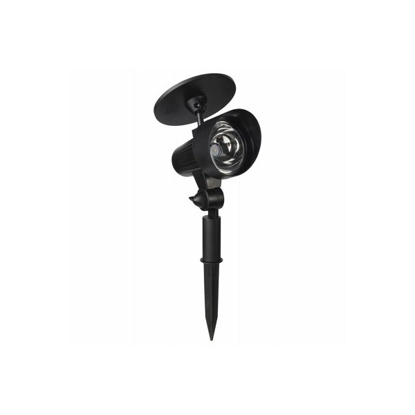 Solar Black Spotlight with 50 Lumen Features durable plastic construction with a black coat finish During the day the solar panel charges the battery creating electrical power At dusk the solar panel, sensing the absence of light, turns on the solar garden light using the electricity stored during the day The more sunlight the fixture gets, the stronger the charge will be and the longer your fixture will illuminate at night Solar panel should receive 8 Hours of sunlight for optimum performance