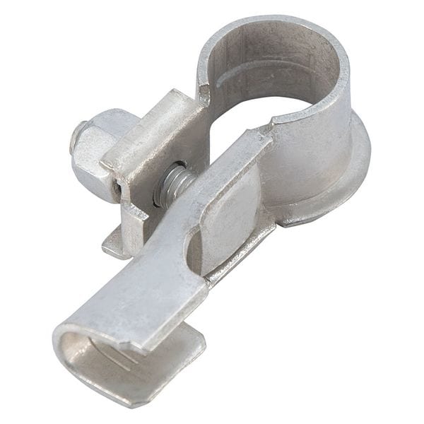 Battery Terminal, Alignment Straight, Connection Type Clamp, Gauge 4 to 6 ga, Polarity Negative, Contact Material Copper, Tin, Overall Length 2 5/16 in, Overall Width 1 in, Overall Depth 0.6 in, Features Polarity Specific to Exact Fit, Recreational, Light and Medium Duty Applications, Tin Plated Copper Alloy Resists Corrosion, Standards RoHS Compliant, Includes Fasteners, Attachment Location Top, Stud Size 15/64 in, Package Quantity 5