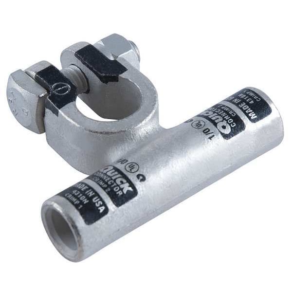 Battery Terminal, Alignment Flag, Connection Type Crimp, Gauge 1/0 ga, Color Code Black, Polarity Negative, Contact Material Copper, Tin, Overall Length 2 1/2 in, Overall Width 2.2 in, Overall Depth 0.7 in, Features Permanent, Readable Gauge and Polarity Stamped on Clamp, Tin Plated for Added Conductivity and Corrosion Resistance, Standards CUL, RoHS Compliant, UL, Includes Fasteners, Attachment Location Top, Stud Size 5/16 in