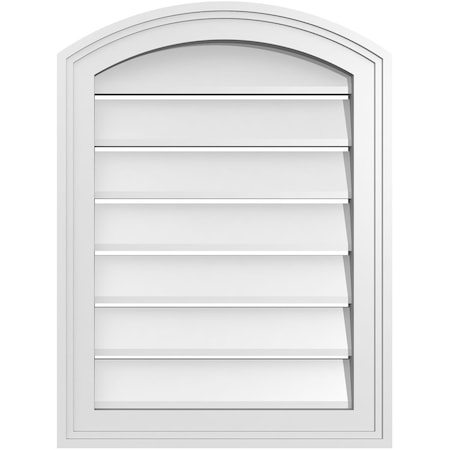Arch Top Surface Mount PVC Gable Vent: Functional, w/ 2"W x 1-1/2"P Brickmould Frame, 24"W x 28"H