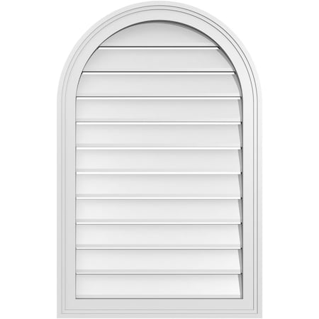 Round Top Surface Mount PVC Gable Vent: Functional, w/ 2"W x 1-1/2"P Brickmould Frame, 22"W x 34"H