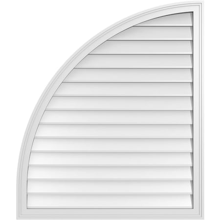Quarter Round Top Right Surface Mount PVC Gable Vent w/ 2"W x 1-1/2"P Brickmould Frame, 38"W x 42"H