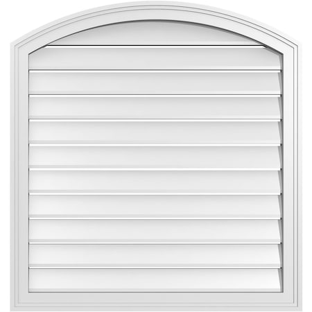 Arch Top Surface Mount PVC Gable Vent: Non-Functional, w/2"W x 1-1/2"P Brickmould Frame, 32"W x 32"H