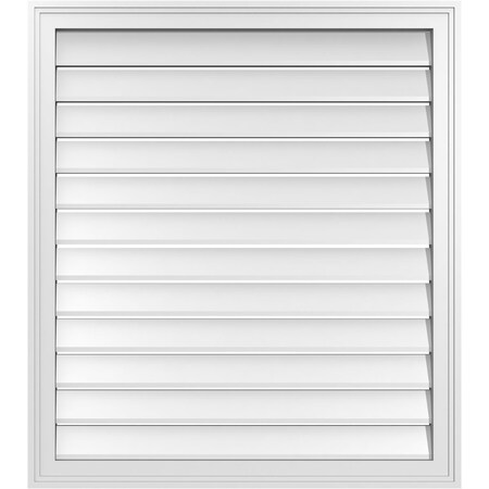 Vertical Surface Mount PVC Gable Vent: Functional, w/ 2"W x 1-1/2"P Brickmould Frame, 32"W x 36"H