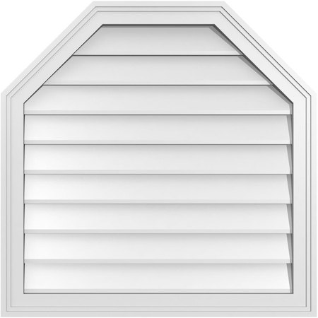 Octagonal Top Surface Mount PVC Gable Vent: Functional, w/ 3-1/2"W x 1"P Standard Frame, 30"W x 36"H