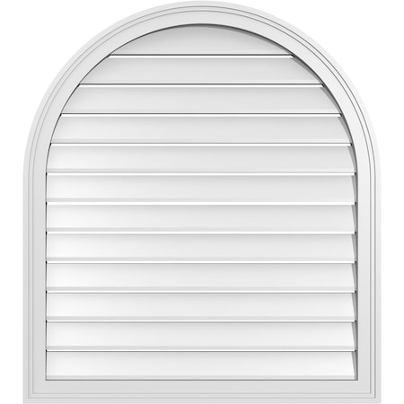 Round Top Surface Mount PVC Gable Vent: Functional, w/ 2"W x 1-1/2"P Brickmould Frame, 32"W x 36"H