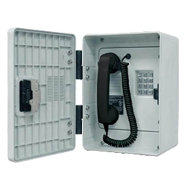 Features High-impact, Non-metallic Enclosure. Extended Temperature Range - - 40 Degrees F to +140 Degrees F. Braille Metallic Keypad. Auto Dials up to 31 Digits. Surface-mount. Hearing Aid Compatible. Non-movable Hookswitch. Volume Control Handset with Noise-canceling Microphone and Hytrel Coiled Cord. 6 ft. extended. Non-volatile Electronic Memory Stand-by Batteries Not Required. Ring-relay Kit. Conformal-coated PCBA. NEMA 3R Weatherproof Rating.