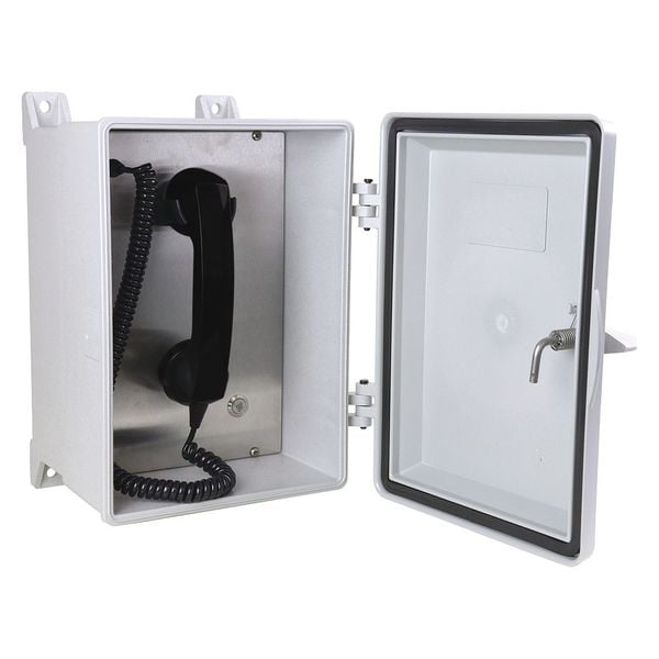 Telephone, Call Waiting No, Overall Depth 14 5/8 in, Speakerphone No, Overall Height 10 1/2 in, Voicemail No, Overall Width 10 7/8 in, Volume Control Yes, Indoor/Outdoor Usage Indoor, Outdoor, Standards CSA Certified, FCC, FCC CRF 47 Part 15, UL Listed, Number of Handsets 1, Number of Lines 1, Cord Length 6 ft, Mounting Location Surface, Caller ID No, Enclosure Material Stainless Steel, Enclosure Rating NEMA 4X, Includes Enclosure Yes, Maximum Operating Temperature 131 Degrees F