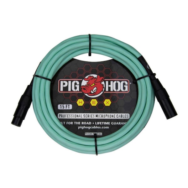 Pig Hog 15 ft. Hex Series Microphone Cable, Seafoam Green