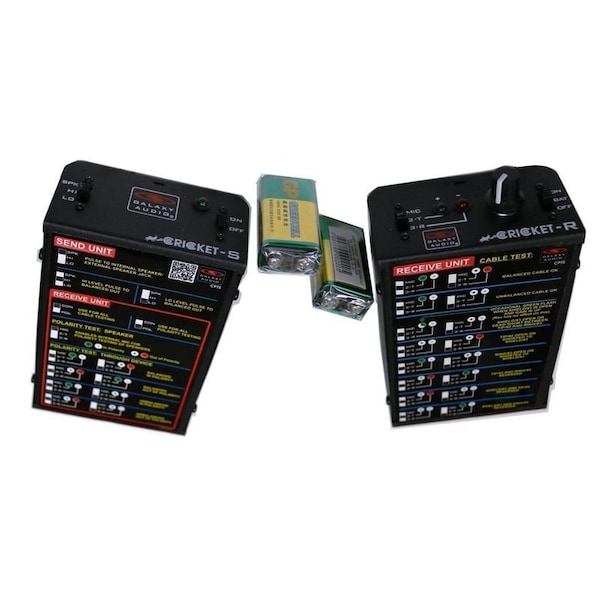 The CRICKET Polarity/Continuity tester is great for sound contractors, musicians, DJs, and many others. Polarity, should it become reversed, can play havoc with a sound system.If two sources are emitting the same electrical or acoustic tone frequency, and one of those sources is in a state of inverted polarity, those tones, when combined at a given point, will cancel each other.This severely alters the sound of a system.Polarity can be reversed while soldering cables, adding components to a sound system, reversing Banana plugs, or replacing a component in a speaker cabinet improperly, to name a few instances.The purpose of the CRICKET is to test the polarity of a sound system each time it is used to insure it is working properly.Galaxy Audio s battery powered CRICKET Polarity/Continuity Test Set makes it easy to determine whether every component in an audio system from patch bay to console to speakers is in or out of polarity.The CRICKET tests balanced and unbalanced cables of up to 2,000 feet in length. It will drive a snake-in even one with transformers, and indicate which of a microphone s XLR connector pins is hot.The CRICKET can also plug directly into a speaker cabinet and drive the components. A glance at the CRICKET s red and green LED s can save hours of troubleshooting.No wonder it s an indispensable tool for sound system owners, operators, installers, and sound rental companies.The CRICKET Polarity Tester is a two-piece unit Send & Receive .The Send unit generates a pulse , which is sent through the speaker, cable, microphone, or the device being tested.The Receive unit interprets that pulse and indicates if that pulse is positive or negative.The bottom of each unit has a quick reference guide on how to understand the readings given.The CRICKET Polarity Test Set is easy to use, necessary to own, and not a lot of money.The CRICKET is suggested for anybody working with sound systems.Checks continuity and polarity* 1/4-in TRS and XLR in/out * Tests speakers, mics, cables and wireless systems* Tests mixers and signal processors for polarity inversions* Internal speaker for testing mic polarity* Internal mic for testing speakers* High level output for testing miles of cable* Battery test on Receive module saves troubleshooting timePulse Waveform Polarity Positive-going balanced line output pulse, switch selectable for hi or low level balanced signal with positive pressure produced at the tip of 1/4-in jack and pin #2