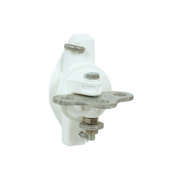 2 Pack, 3 Way, Heavy Duty, Wood Post Gate Anchor, Snap On Plastic Insulator For Steel Posts, Can Be Nailed To Wooden Posts Or Screwed To Vinyl Posts, Galvanized, Mild Steel Plate For Long Life, 3 Anchor Points Allow For Additional Connections, Power Connects To Bolt From Below The Plate