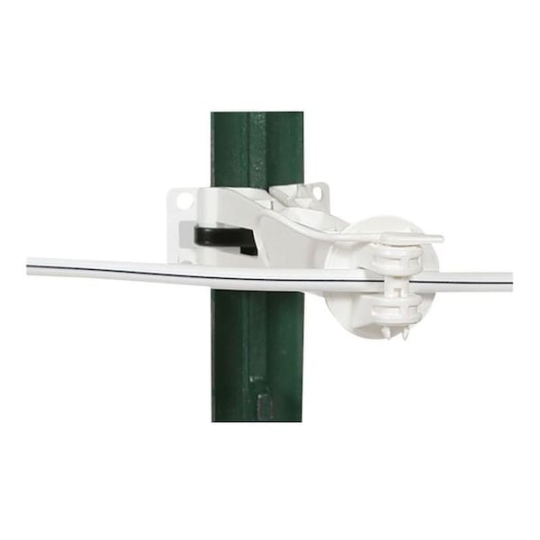 World's first multi-post pinlock offset insulator. This multi-post insulator is able to be attached to both sides of a T-post or nailed to a wooden post. It has a pinlock clip that allows for easy fence construction.