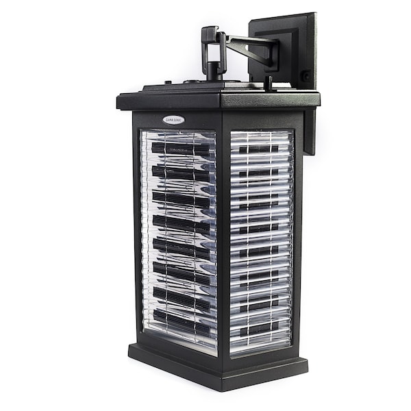 Anything but bland, the Gama Sonic in a matte black finish is perfect for brightening up any patio, deck, or dimly-lit area around outside of the home. Using breakthrough solar technology, the glass panels appear to look like regular glass but they are actually made of Gama Sonic’s new Translucent Solar Panels (TSP) that can reduce the charge time and longevity of brightness. The clear solar panels are made from monocrystalline and cover 9x more surface area than most traditional exterior lights. The outdoor wall light is slender in size and maintenance free as it features two Li-ion rechargeable batteries that on a full charge can run between 12 to 24 hours depending on the level of brightness it is set on. The patented GS LED light bulb produces a warm white luminous glow and operates on an automatic dusk to dawn feature. Just place the fixture to any exterior and solar UV rays will charge the battery and the will radiate 130 lumens. Farmhouse Solar outdoor light is built to last and endure any type of weather with its rust-resistant cast aluminum structure. Save on energy and money in style with the modern, eye-catching exterior wall light.