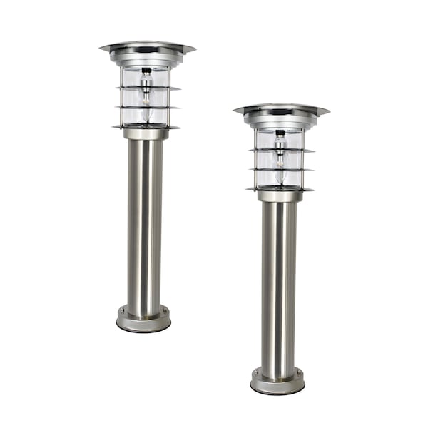 Silver Stainless Steel Bollard Solar Light w/EZ Anchor, 2PK