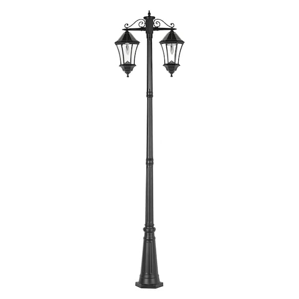 Gama Sonic's Victorian Bulb Morph Solar Lamp Post with Double Downward Light provides cost and energy savings each year while enhancing the look of outdoor areas at night with its modern design. Light up your neighborhoods, walkways, and parks with these beautifully designed and sustainable double-headed solar lamp posts.Powered by Gama Sonic's patented Morph technology, these solar lamp posts mimic the look and feel of conventional light bulbs while incorporating it into our outdoor solar lights. For a sustainable lighting solution and green alternative to gas or electric-powered outdoor lighting, the 10.8W monocrystalline solar panel charges using the sun's free energy. Automatic dusk-to-dawn operation eliminates the need to remember to turn on the light at dusk or turn it off at dusk yourself.After deciding where to place this solar lamp post, enjoy easy DIY installation with no wiring, digging, trenching, or running gas lines required and no continued maintenance. All that is left to do is place this outdoor solar light in the desired location and let the sun do the rest.Once fully charged, this double-headed Victorian Bulb lamp post can last from 12-25 hours. Keep in mind an initial 2-3 days of charge is needed for optimal performance. It's warm-white LED color sets a beautiful ambiance at night, shining brightly with 300-lumen output. This solar light will last for years to come constructed of black cast-aluminum, which is weather and rust-resistant.
