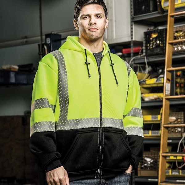 Full Zip Hi-Vis Hoodie, 100% Spun Polyester Fleece, Hi Vis Lime, M