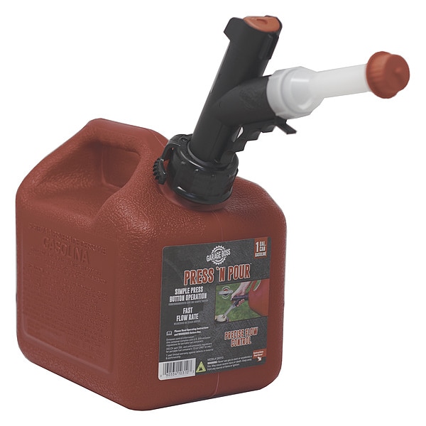 Gas Can, Capacity 1 gal, Compatible Fuel Gasoline, Tank Material Plastic, Venting Type Self-Venting, Spout Type Smart-Fill Spout, Spout Length 15 1/4 in, Spout Location Top - Removable, Color Red, Height 8 in, Width 6 in, Length 8 in, Product Type Gas Can, Spout Outside Diameter 2 1/2 in, Standards CARB, EPA