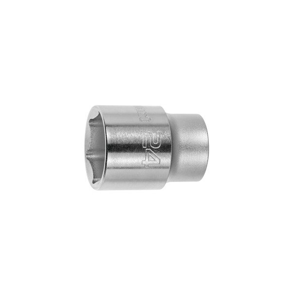 1/2 inch Drive Socket, 6 pt, 8 mm. Version: Forged from high quality steel- internally beveled for easy fitting to bolt heads. Square socket drive with close tolerances for secure fit on the drive attachment. Internal square to DIN 3120. Close tolerance widths across flats protects nuts and bolt heads. Thin walls for access to restricted places. Hexagon with HT drive profile protects the corners of nuts and bolts. Standard: DIN 3124 Material: Chrome vanadium steel- chrome-plated. Material: Chrome vanadium steel Dia drive output end: 12.5 mm Length: 38 mm