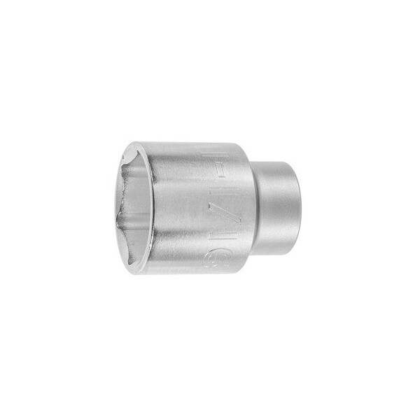 Forged from high quality steel- internally bevelled for easy fitting to bolt heads. Square socket drives with close tolerances for secure fit on the drive attachment. Close tolerance widths across flats protects nuts and bolt heads. Thin walls for access to restricted places. Hexagon with HT drive profile protects the corners of nuts and bolts. Material: Chrome vanadium steel- chrome-plated. Square drive: 1/2 in Width across flats: 1-1/16 in dia drive output end: 36 mm Length: 44 mm