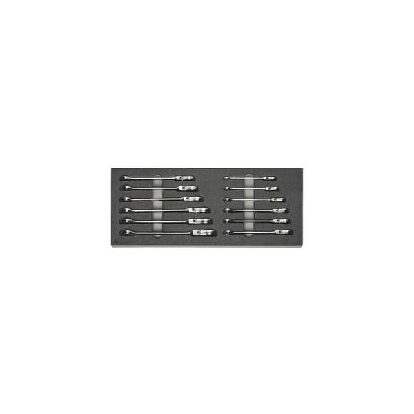 12 Pc Open End Ratcheting Wrench Set in Foam, 8 mm to 19 mm
