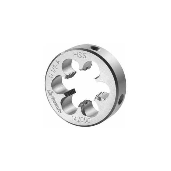 1/2in-14 HSS Round Die, for Whitworth Pipe Threads, Closed/Pre-Slit Form