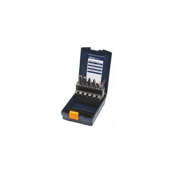 The innovative tooth geometry permits very high metal removal rates combined with smooth cutting and good guidance accuracy. The optimized chip formation no pointed chips ensures good surface quality. Shank 6 mm. The newly developed innovative tooth geometry permits high metal removal rates combined with extremely smooth running and very good guidance. The optimum chip formation no pointed chips achieves high surface quality in roughing and finishing applications. STEEL Cut carbide burr set with popular shape variants. With high-performance coating for longer tool life, less heat input, better chip evacuation. High rate of material removal. Smooth running. High-performance coating for low thermal stress, longer tool life, and improved chip evacuation. State-of-the-art substrate optimized for steel materials. Maximum tool life. GARANT burrs are manufactured from high performance carbide grades with high wear resistance and maximum cutting edge strength, using only the latest CNC machines. Steel shanks are used when the head diameter is larger than the shank diameter, otherwise they are made from solid carbide. Application: optimized for use on steel and steel castings. Suitable for use with power tools and industrial robots on almost all steel materials. For deburring, edge breaking, cleaning, weld and surface preparation. Supplied with: 1 pc. each No. 547400 size A1225, C1225, D1210, G1225, F1225. Note: Materials with poor heat conductivity, reduce speed to avoid overheating of the burr and smearing. Shank : 6 mm