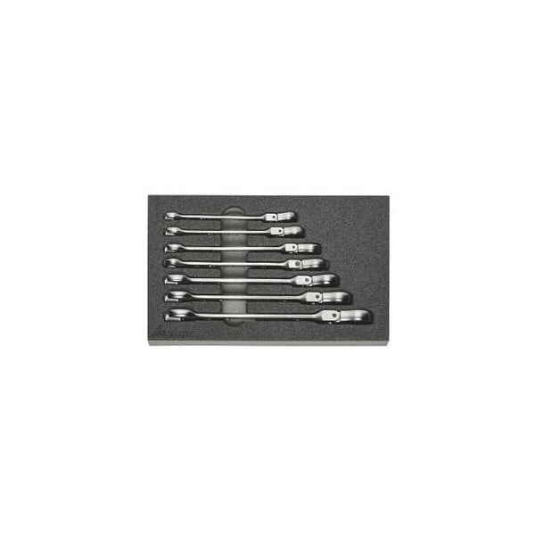 7 Pc Open End Ratcheting Wrench Set in Foam, 8 mm to 16 mm