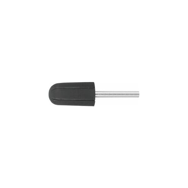 The seamlessly formed abrasive caps slide on to the rubber body and are securely held in place by centrifugal force when the machine is running. Abrasive caps can be replaced quickly and easily replace in direction of slots. Slotted, resilient rubber body with steel shank. Application: Used mostly in tool making for finishing where access is difficult. Suitable for: Abrasive caps No. 553035 553328. Shank : 6 mm maximum speed: 20000 min-1
