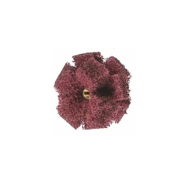 Star-shaped abrasive fleece with thread mounting. Tear-resistant and sturdy fleece body, no fraying at cut edges. 3-layer. Application: For cleaning, deburring, and finishing at hard-to-access places such as bores, internal threads, pipes, and recesses. Use clamping pin No. 555920. Iron, sulphur and chlorine constituents: < 0-1 % maximum speed: 13000 min-1 Grit designation: fine color: red