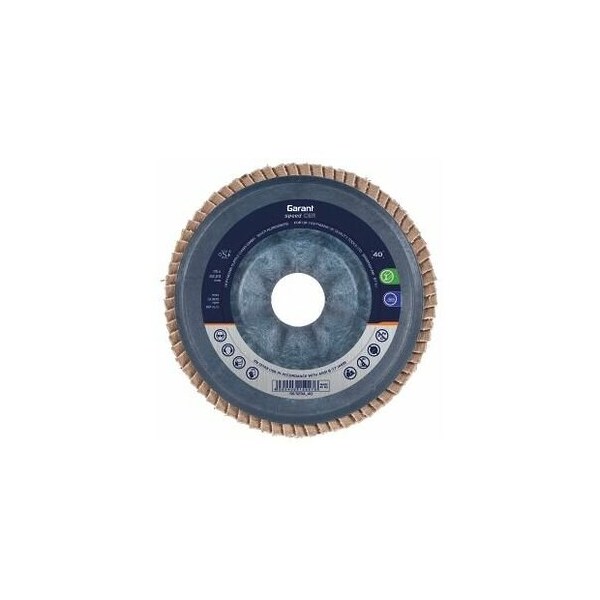 High-quality self-sharpening ceramic grit CER for maximum abrasive power and low contact pressure. Active coating for cool cutting. Sturdy poly-cotton mixed fabric for ideal wear characteristics and stability, even when used on edges. Ergonomic and vibration-damping polyester plastic backing pad can be reset. Best results on high-power angle grinders. long life very closely spaced flap strips, for maximum tool life. Application: General purpose abrasive disc operations, surface abrasion, material removal and edge smoothing. maximum circumferential speed: 80 m/s Shape description: dished Bore : 22.23 mm