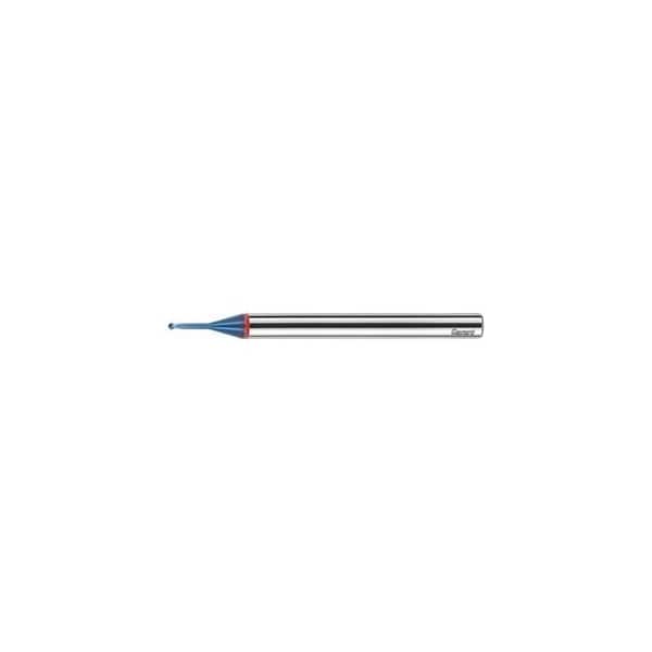 GARANT Diabolo: Special geometry, coating and carbide for hard machining in the high-performance field. Suitable even for machining electrolytic copper. Recess angle a = 16 Deg. Tolerances: Corner radius: Radius contour = 0 / -0.005 mm. Neck Dia. D1 = 0 / -0.01 mm. Note: At greater tool overhang lengths, use a reduced value for ap! values for: copying: ap = 0.05xDxap korr To calculate the feed rate vf please use the actual speed of the machine the maximum possible speed! e.g: vf = 18000 rpmx fz mm/Zx z No. of teeth Z: 2 Helix angle: 30 degrees No. of teeth Z: 2 Flute length Lc: 1.6 mm Overhang length L1 incl. recess: 3 mm Recess Dia. D1: 1.94 mm Overall length L: 45 mm Shank Dia. Ds: 4 mm