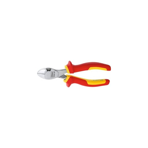 Heavy-duty head- induction hardened cutting edges approx. 64 HRC- laid-on joint with no play. Jaws chrome-plated- handles with ergonomically optimised multi-component coverings with non-slip Haptoprene surface. Insulated to DIN EN IEC 60900 / VDE 0682-201 for working at voltages up to 1000V. Standard: DIN ISO 5749 Material: Chrome vanadium steel- drop-forged and oil-hardened. Cutting capacity soft wire up to : 3.4 mm Cutting capacity hard wire up to : 2.5 mm Cutting capacity piano wire up to : 2 mm-u00a0- }