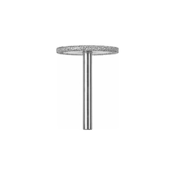 Precision-ground blanks with diamond application in vacuum brazing processes. Advantage: More free-cutting than galvanically bonded grinding points due large grit projection about 70% of the grit projects from the bonding material and stronger bonding. The open structure and coarse D427 grit reduce the grinding temperature and minimise the tendency to clog up. Application: For hand-held use, on industrial robots or CNC grinding machines for rough grinding work with high material removal rates. Side milling, contour milling of composite materials CRP/GRP, Fiberglass, graphite, honeycomb. Note: Other grit grade, special shapes or grinding points with internal cooling for stationary use are available in request. Grinding medium code: D Shape description: Disc Head : 40 mm Head length: 3.5 mm Overall length: 50 mm Shank : 6 mm