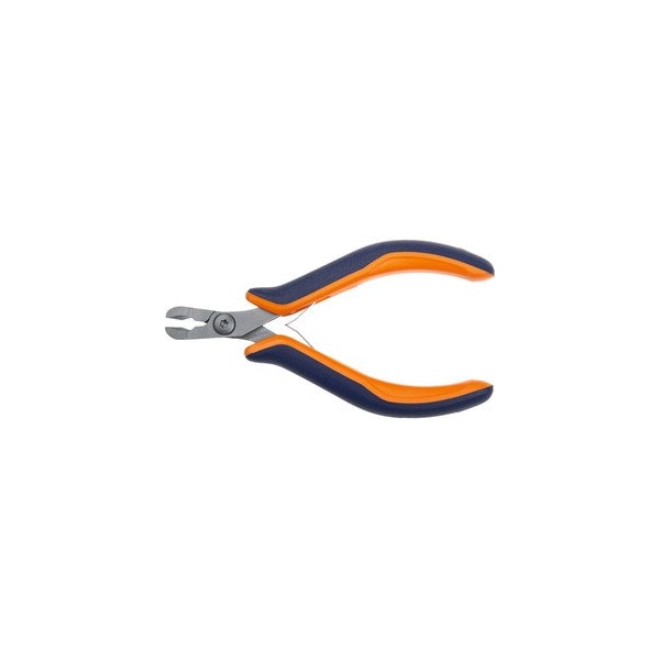 Precision machined with slim shape. Cutting edges induction hardened 62 - 64 HRC. Non-reflecting surface- matt shot-blasted with inlaid joint and countersunk screw. Double interchangeable springs for easy operation. 2-component grips of dissipative material. Suitable for ESD work. Material: CNC-machined special tool steel for extremely accurate tolerances. Cutting chamfer: very fine bevel Head width: 10 mm Cutter length: 10 mm Cutting capacity copper wire up to : 0.2 - 1.5 mm