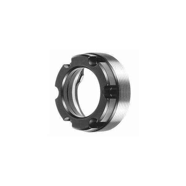 Thread and taper ground in a single setup for highest concentricity. Internal clamping nut with an external thread. With slots. Suitable for: ER collet chucks with internal thread. Optional extras: Single open ended wrench for size 16, No. 613300 size 25. Sealing rings No. 309625, 309630, 309635, 309645. Note: Collet chuck and clamping nut are balanced separately! Standard: DIN 6499 D Overall length L: 20 mm External Dia D: 50 mm Thread: M50x1.5 maximum tightening torque: 120 Nm