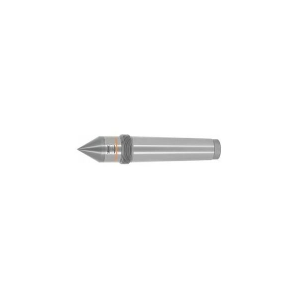 High-precision solid carbide tip. Close-fitting carbide design for optimum stability and freedom from breakage, no additional safety equipment required. Tip angle 60 Deg. High surface quality on the shank for optimum fit. Complete tool hardened and ground. With carbide tips for applications with high wear. Description: Lathe Centers are mainly used on lathes to support long and slim workpieces, since with these workpieces there would otherwise be a risk of the workpiece bending or moving around as a result of the forces generated. The lathe Center is secured with a Morse taper. The workpiece is clamped in the chuck and a counterbore is added using a Center drill. After re-clamping, the lathe Center is then inserted. Application: For grinding high-precision components. Optional extras: Draw-off nut No. 323230. Note: Order the draw-off nut separately. Geometric dimensions to DIN 806 E. Head length L: 87.5 mm External Dia D: 44.7 mm maximum radial run-out: 0.001 mm Thread M: M48x1.5
